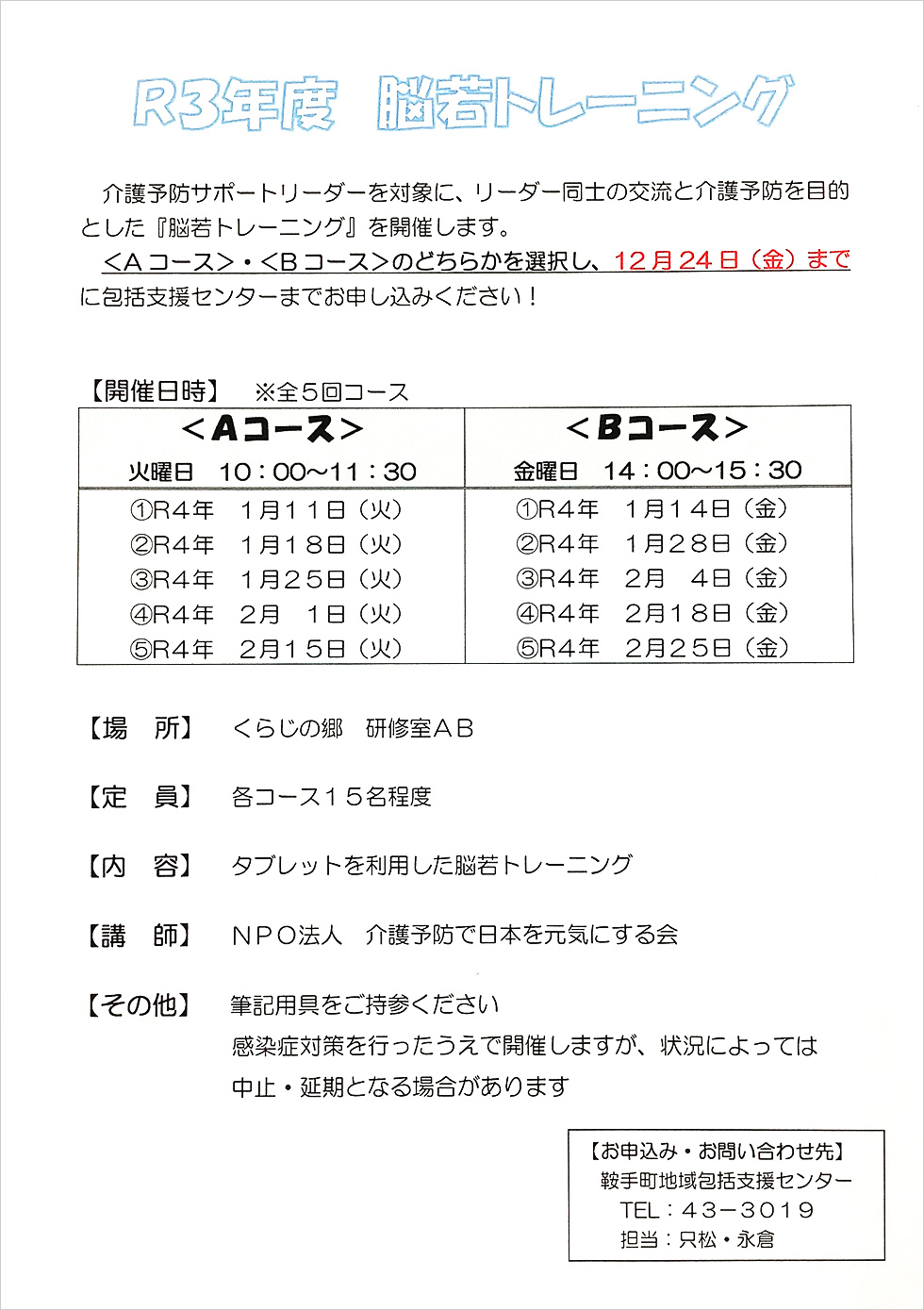 <Aコース>・<Bコース>のどちらかを選択し、12月24日(金)までに包括支援センターまでお申し込みください!