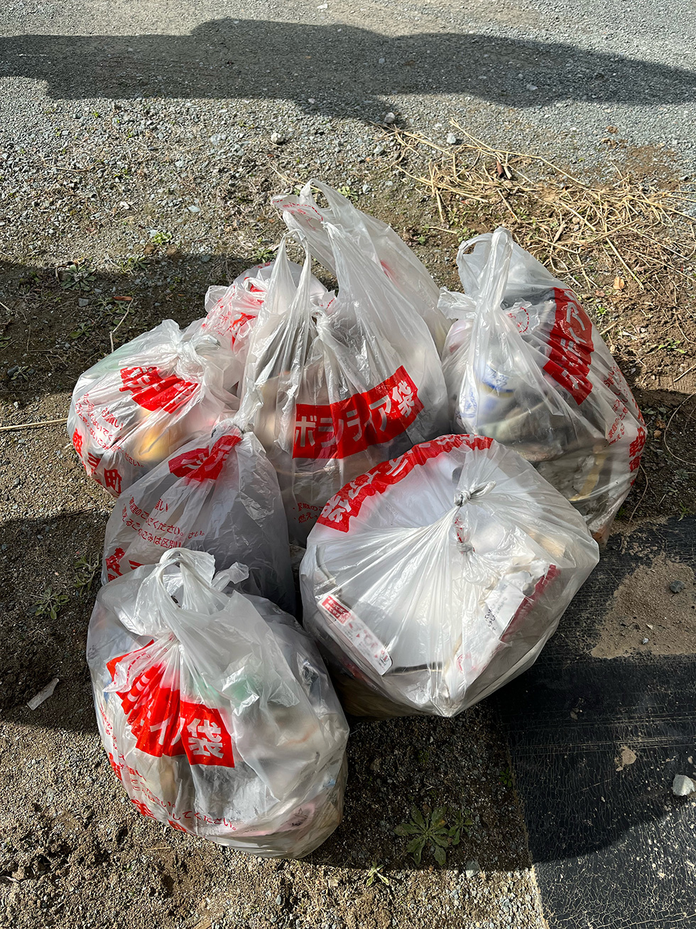 出席者は3名で、1時間半の清掃活動の結果6袋のゴミ袋が集まりました。