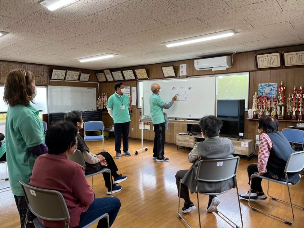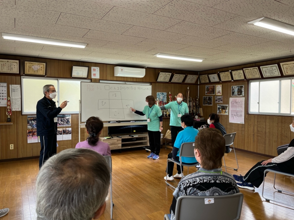 令和4年10月より始まった通いの場剣北「つどい」が、令和5年4月より内容がかわり再スタートしました。前年度はケア・トランポリンを使用した介護予防運動を行っていましたが、今年度から体操や脳トレ、歌などを行います。先日初回が終了し、参加者同士でお話しながら脳トレや体操を行い、楽しい時間を過ごしていました。