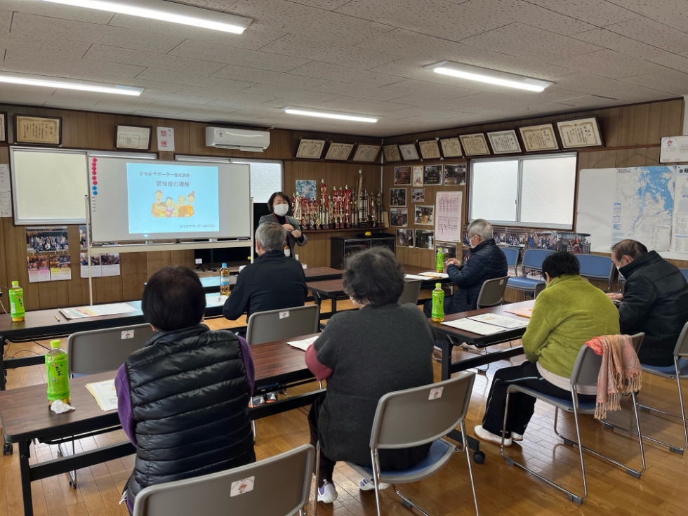 令和6年1月24日(水)に昭和通り区公民館にて「認知症サポーター養成講座」を行いました。雪が降る中、6名の方が参加してくださいました。今回の講師は、ボランティアであるキャラバン・メイトの河上さんでした。講座を受けた方からは、「参考になりました」「ぜひ認知症のサポートをしたいと思った」などの感想をいただきました。