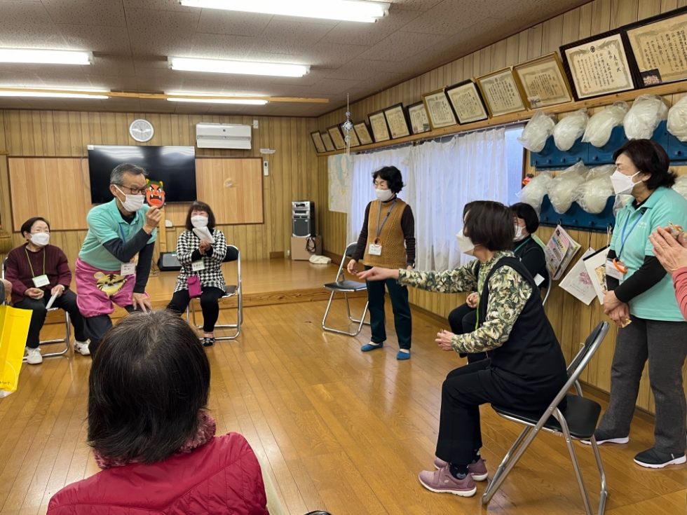 令和6年2月1日(木)に大池区公民館にて通いの場『それいゆ』が開催されました。雨の中でしたが、6名の方が参加されました。みんなで体操をしたり、歌ったりしました。節分が近いので、最後にはボランティアがトラのパンツとお面を身につけ鬼となり、みんなで豆まきをしました。みなさんコントロール抜群で、大笑いしながら楽しく豆まきできました。