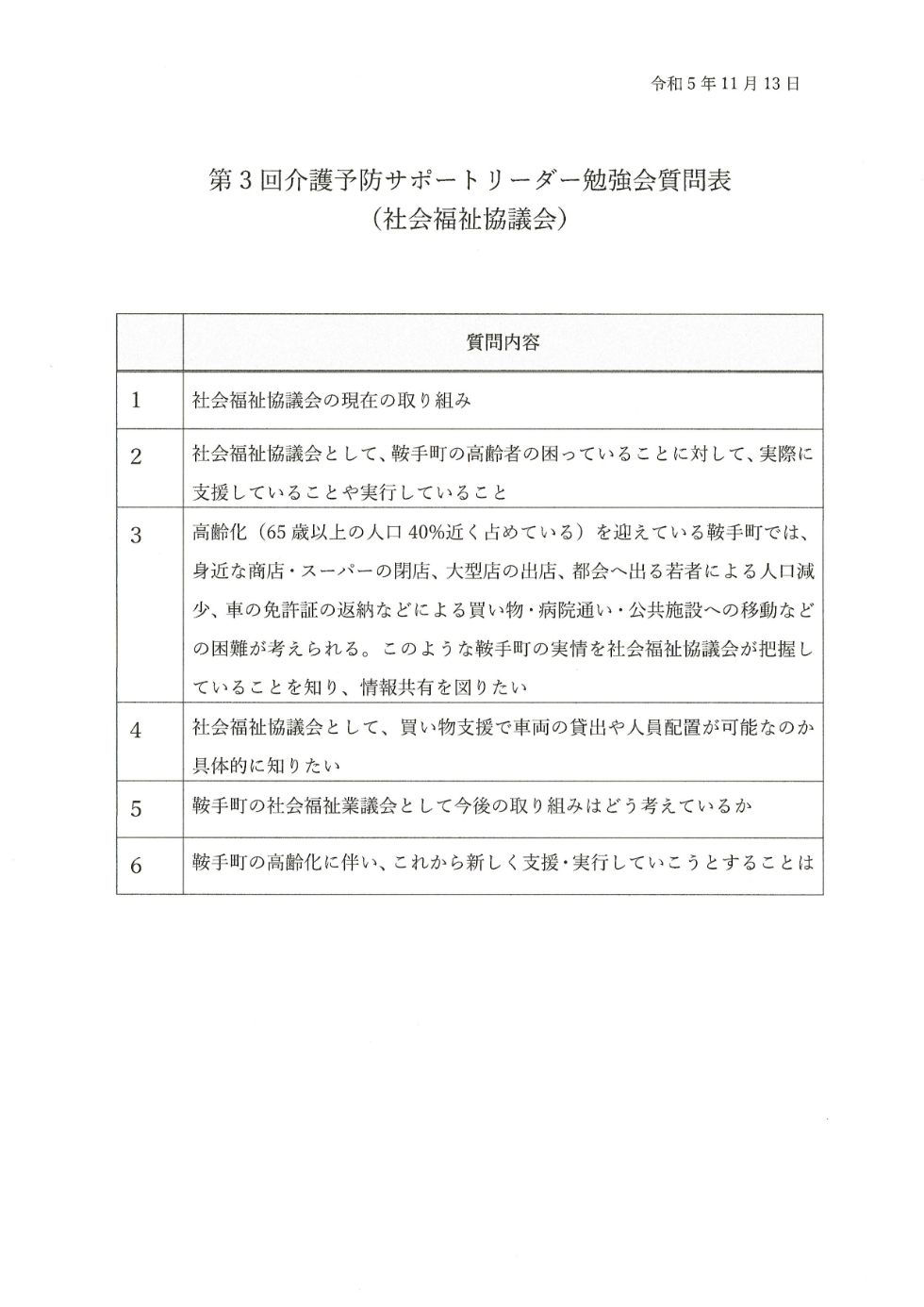社会福祉協議会へ提出した質問表に対する返答がありましたので、みなさんへご報告します。