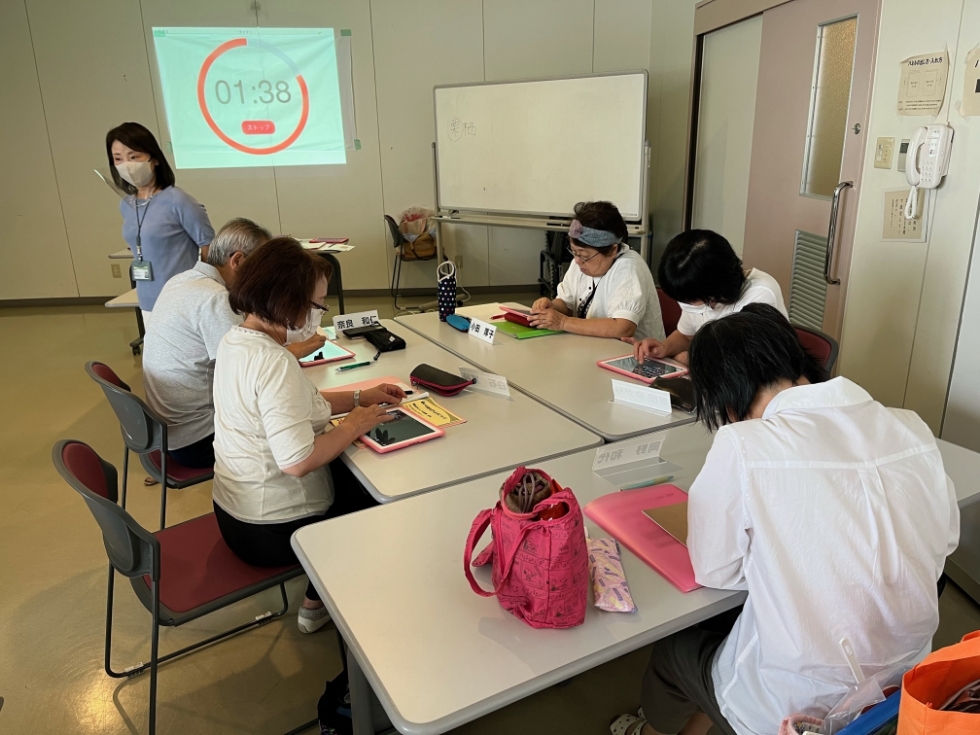 令和5年6月29日(木)に脳若トレーニングの第1回目が行われました。タブレットを使用して短期記憶トレーニングや想起トレーニングを参加者みんなで楽しく行いました。その他にもクイズや体操、歌など盛りだくさんな内容でした。また次回もみんなで楽しく脳トレをしましょう。