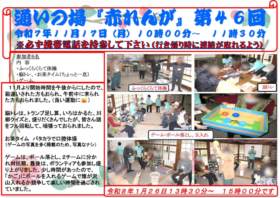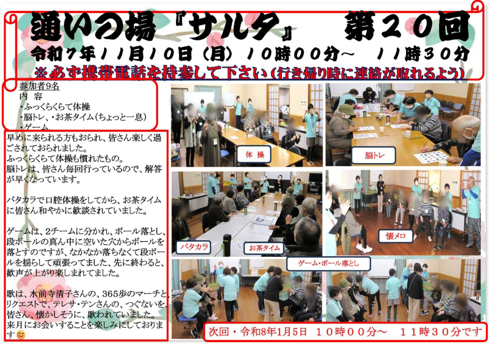 11月に開催された通いの場「サルタ」・「赤れんが」の広報誌です。