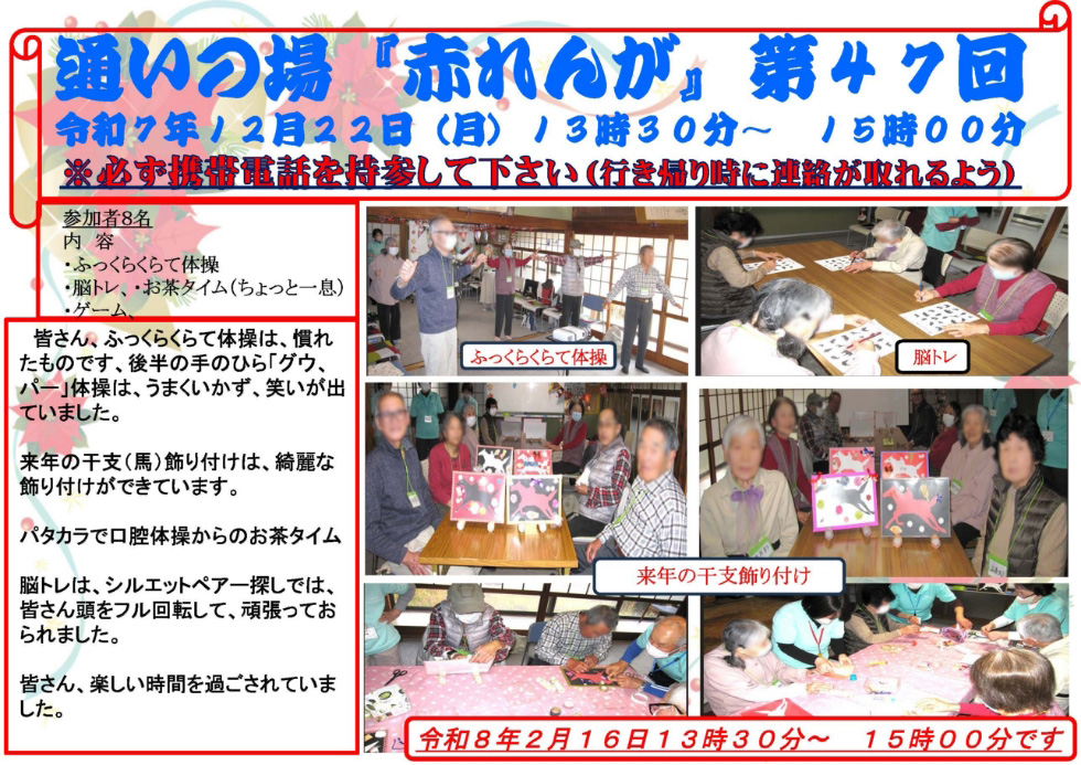 12月に開催された通いの場「サルタ」・「赤れんが」の広報誌です。