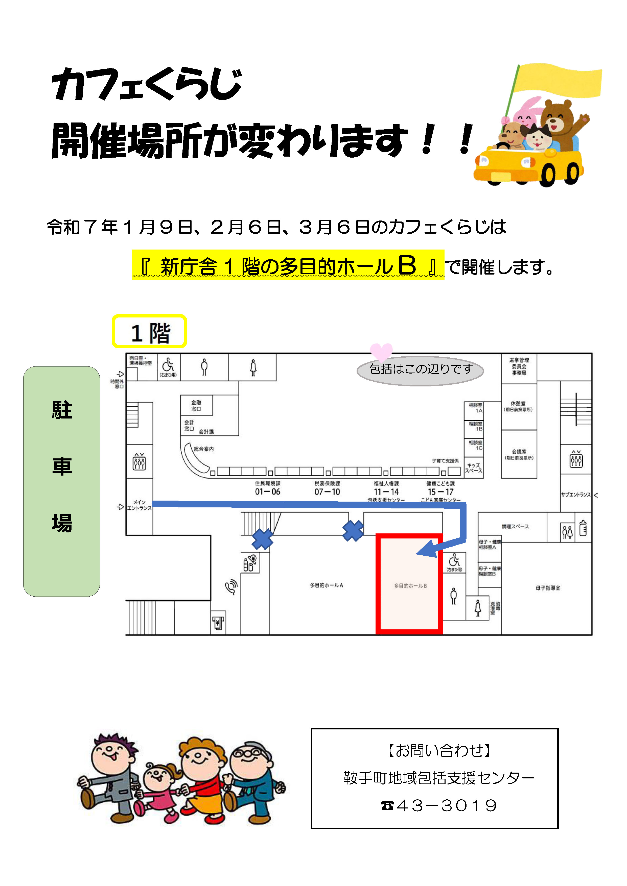 また、令和7年1月9日からはカフェくらじの開催場所が新庁舎1階多目的ホールBに変更になります。
