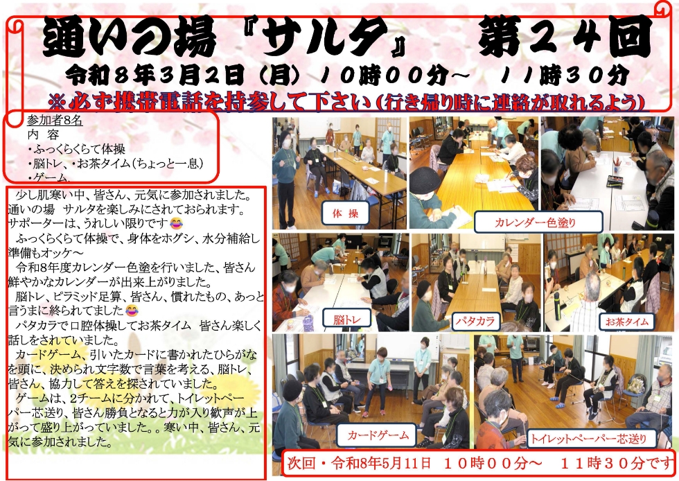 2月に開催された通いの場「サルタ」・「赤れんが」の広報誌です。